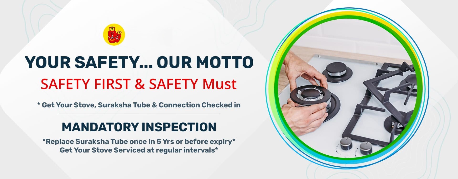 Suraksha Inspection is a comprehensive safety check for your LPG installation. It is recommended by Bharatgas to ensure your gas cylinder, regulator, pipe, and stove are functioning properly. This simple inspection can prevent major accidents and improve the efficiency of your LPG system.